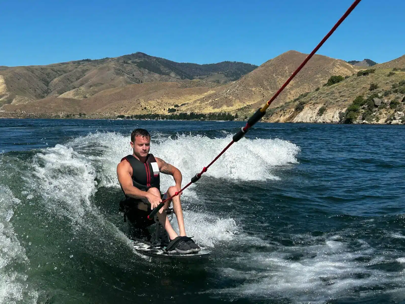 Tyler Densford, entrenador de Wake for Warriors, viajó a Idaho para guiar a los participantes en el surf acuático. Densford, quien sufrió una lesión de parálisis del pecho hacia abajo, compartió cómo el descubrimiento de la Fundación de Atletas con Discapacidad y Wake for Warriors le cambió la vida.